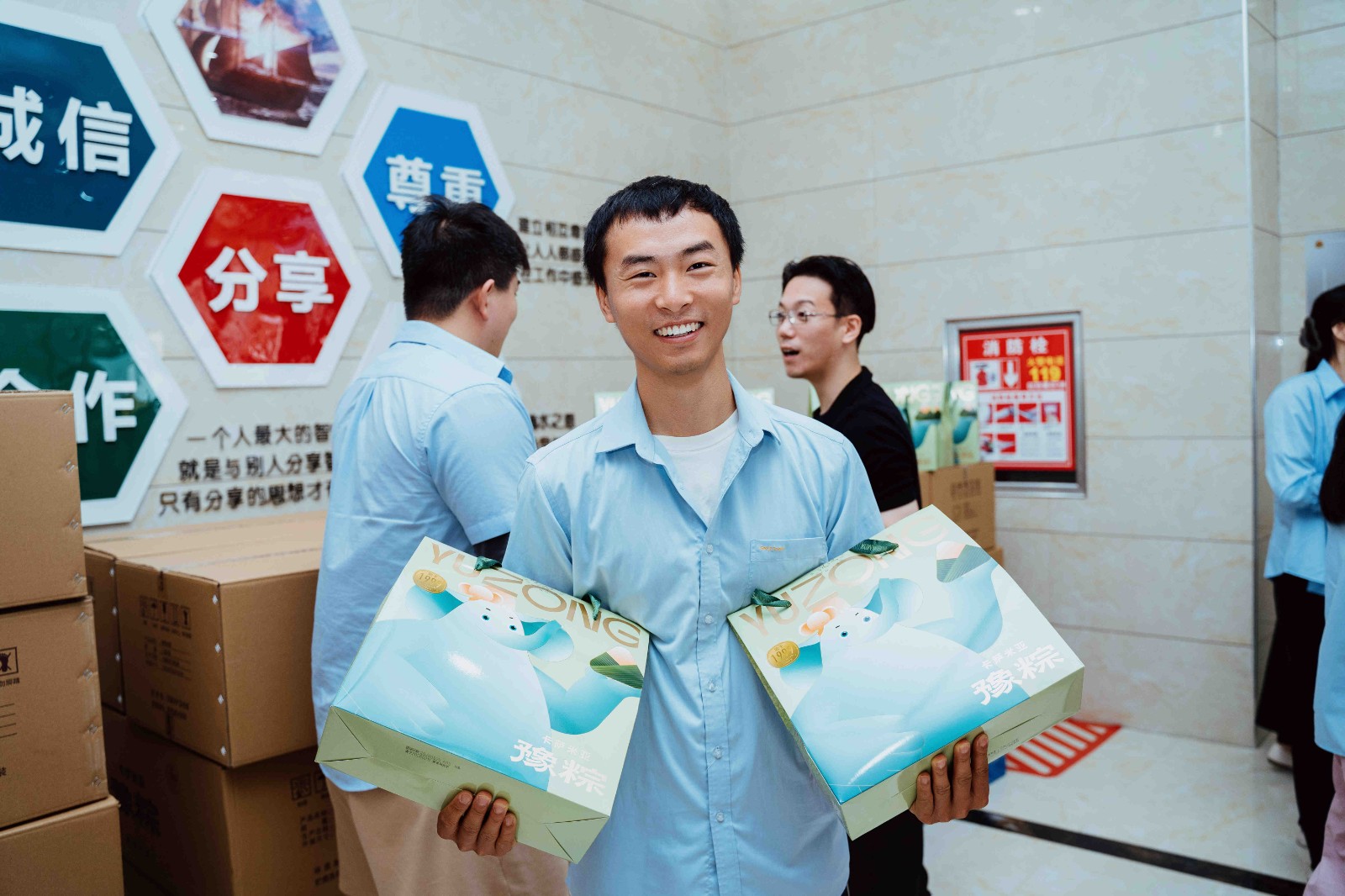 端午佳节将至,为感谢全体员工的辛勤付出,狐狸视频污APP下载地址食品有限公司精心准备了952份粽子礼盒,总经理谭铭坚先生同公司各领导一起为每一位员工发放节日福利,送上节日的祝福与关怀。礼盒内含传统风味的甜粽和时下流行的杂粮粽,既承载了浓厚的节日氛围,也体现了公司对员工生活的贴心关照。