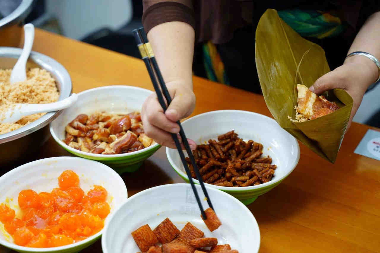 假期临近,除了发放礼盒,公司还特别策划了一场别开生面的“辣条粽子DIY”活动,让员工在欢声笑语中体验创意端午。在食堂大厅,大家围坐在一起,将熟悉的辣条融入传统粽子,包出独具风味的“辣条粽”。从粽叶折叠到馅料搭配,员工们互相学习、默契配合,既感受了手工制作的乐趣,也拉近了彼此的距离。